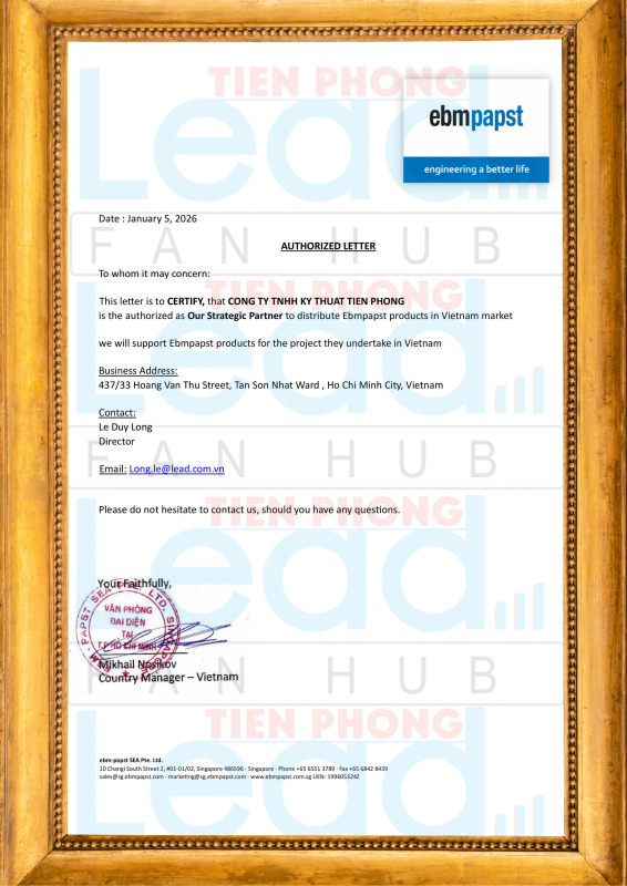 Tiên Phong hân hạnh là Đại lý phân phối quạt Ebmpapst chính hãng tại Việt Nam.