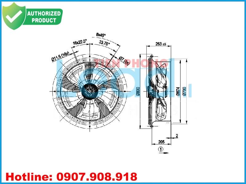 2. Chi tiết quạt hướng trục EBMPAPST W6D630-CN09-81