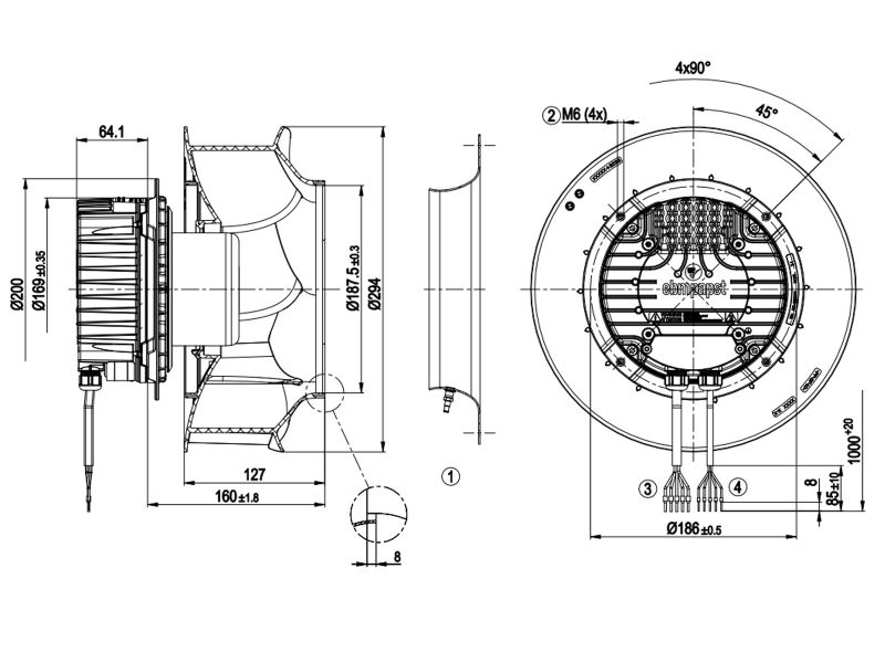 2. Chi tiết Quạt ly tâm EC FAN hiệu EBMPAPST R3G280-PR04-I1
