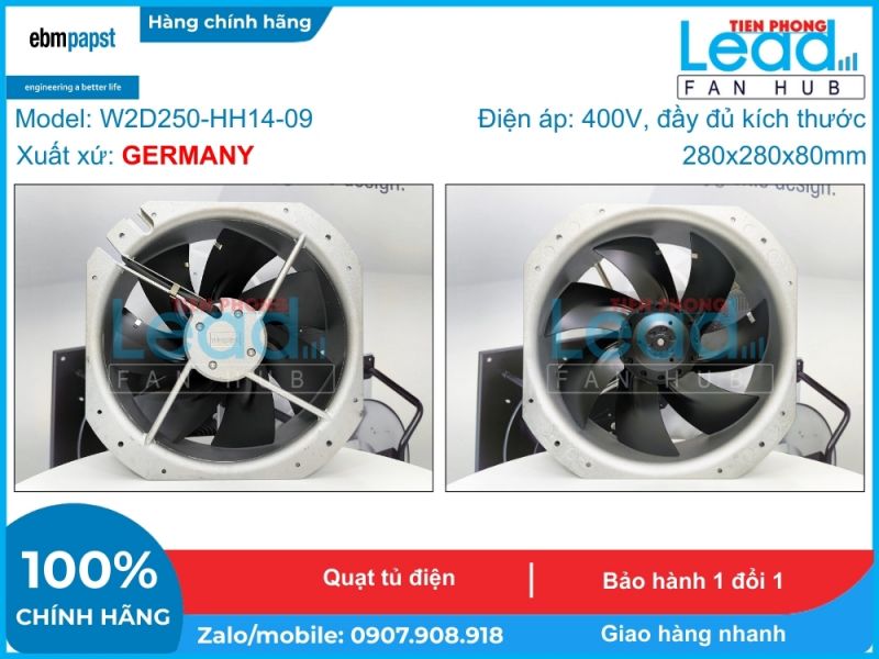 Quạt hút EBMPAPST W2D250-HH14-09, 400/460VAC, 280x280x80mm